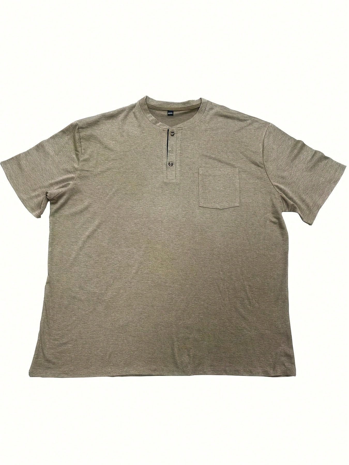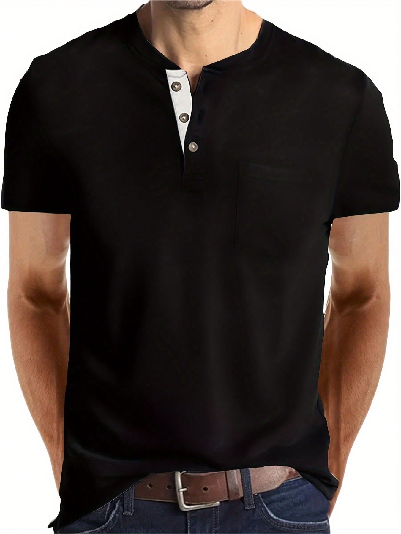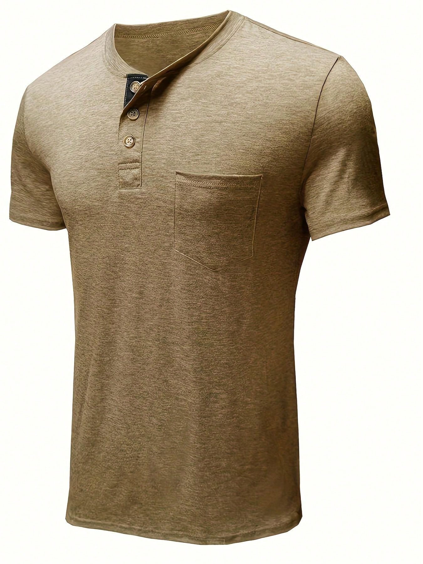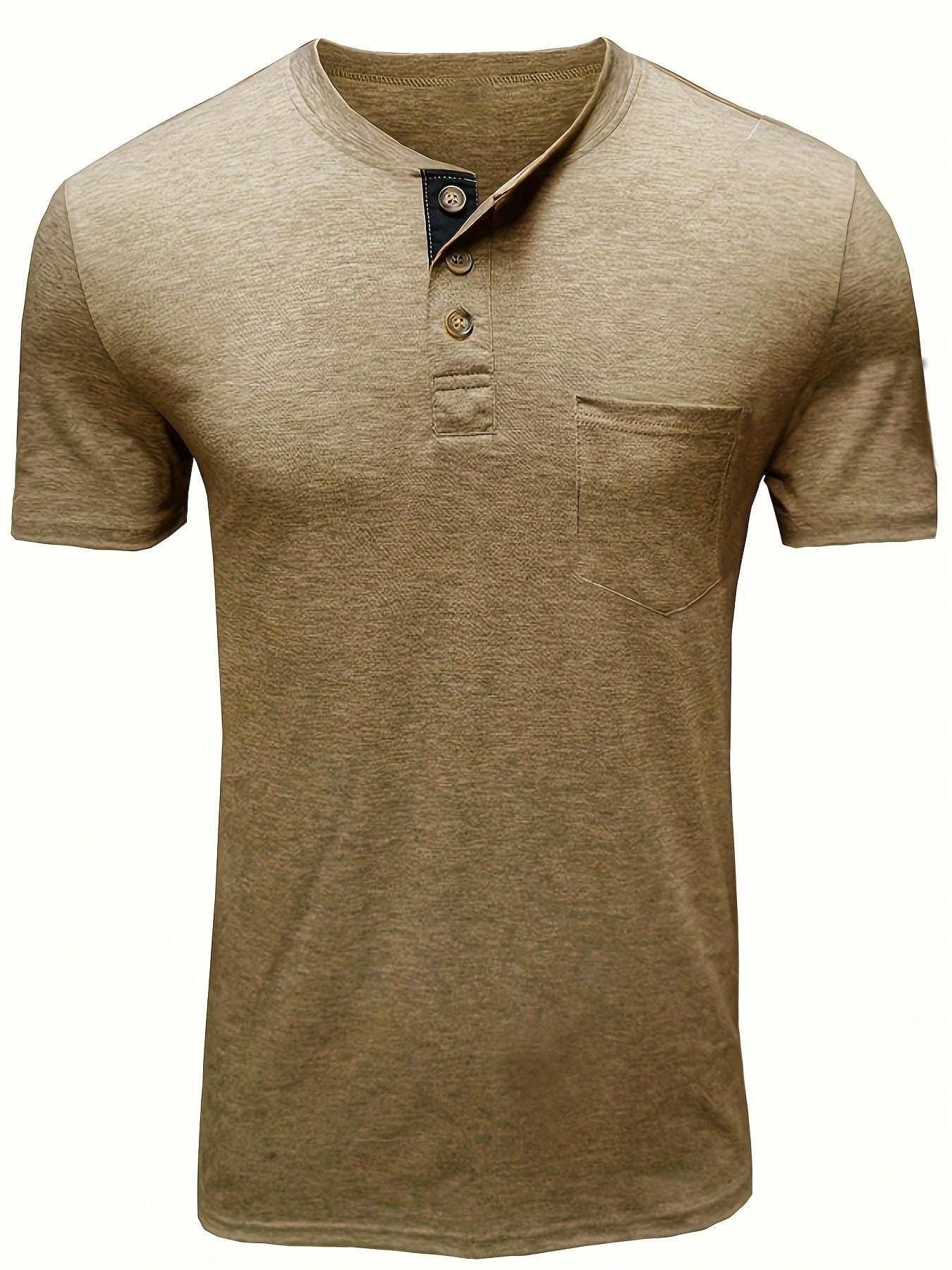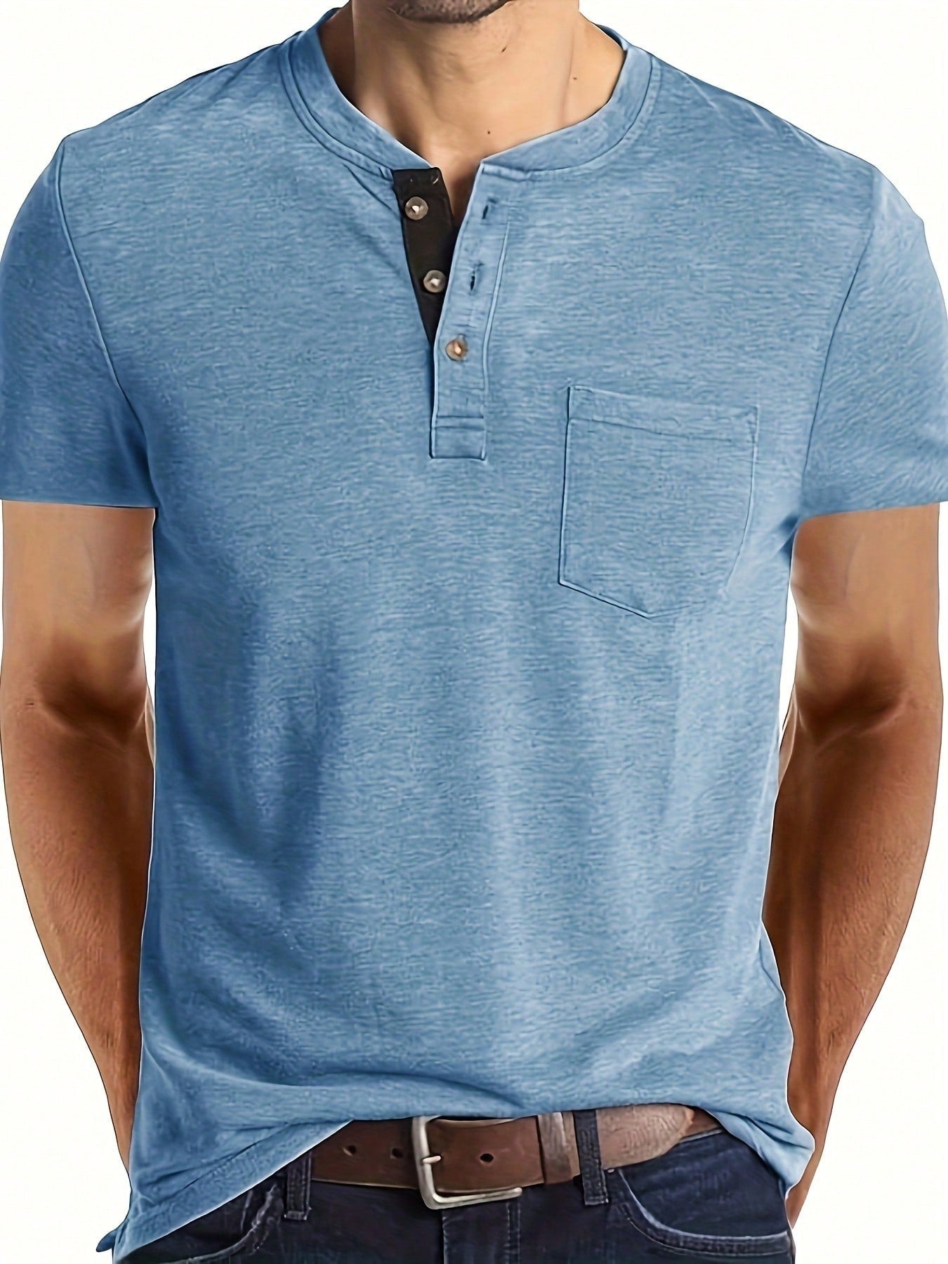 Men's Fashion Henley Long Sleeve Button Down Cotton T-Shirt With Pockets