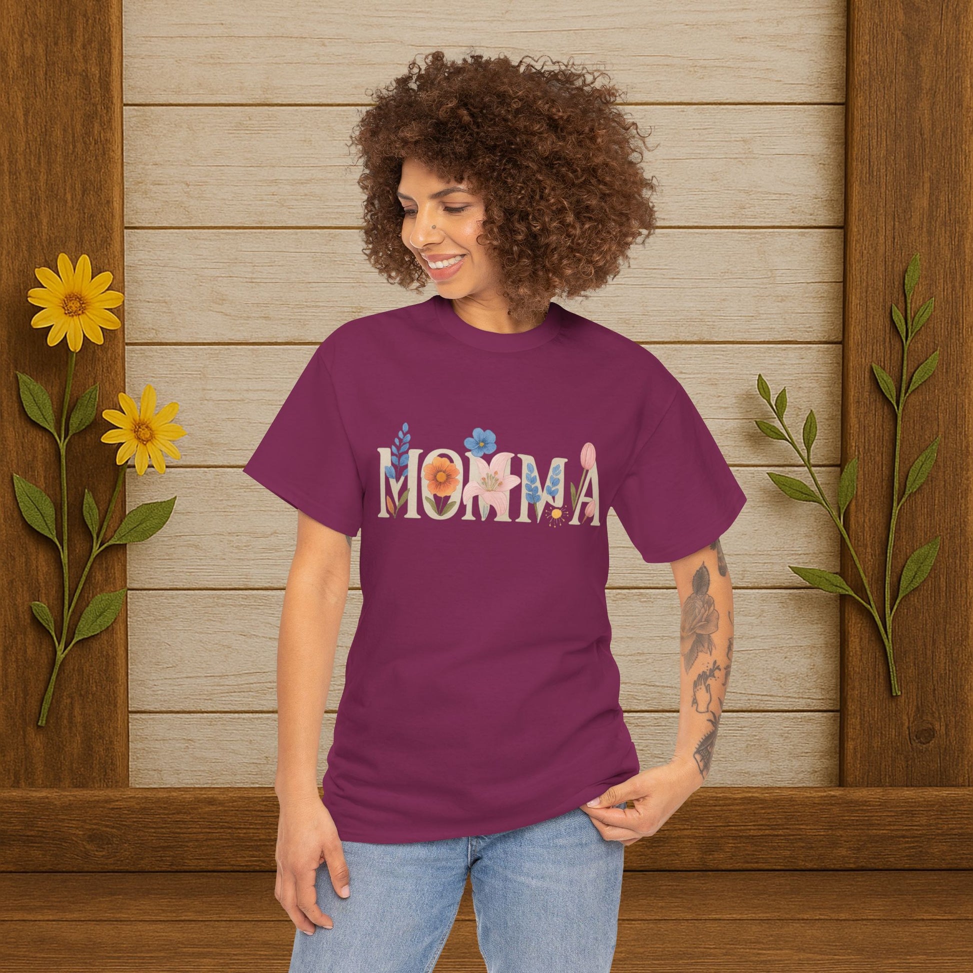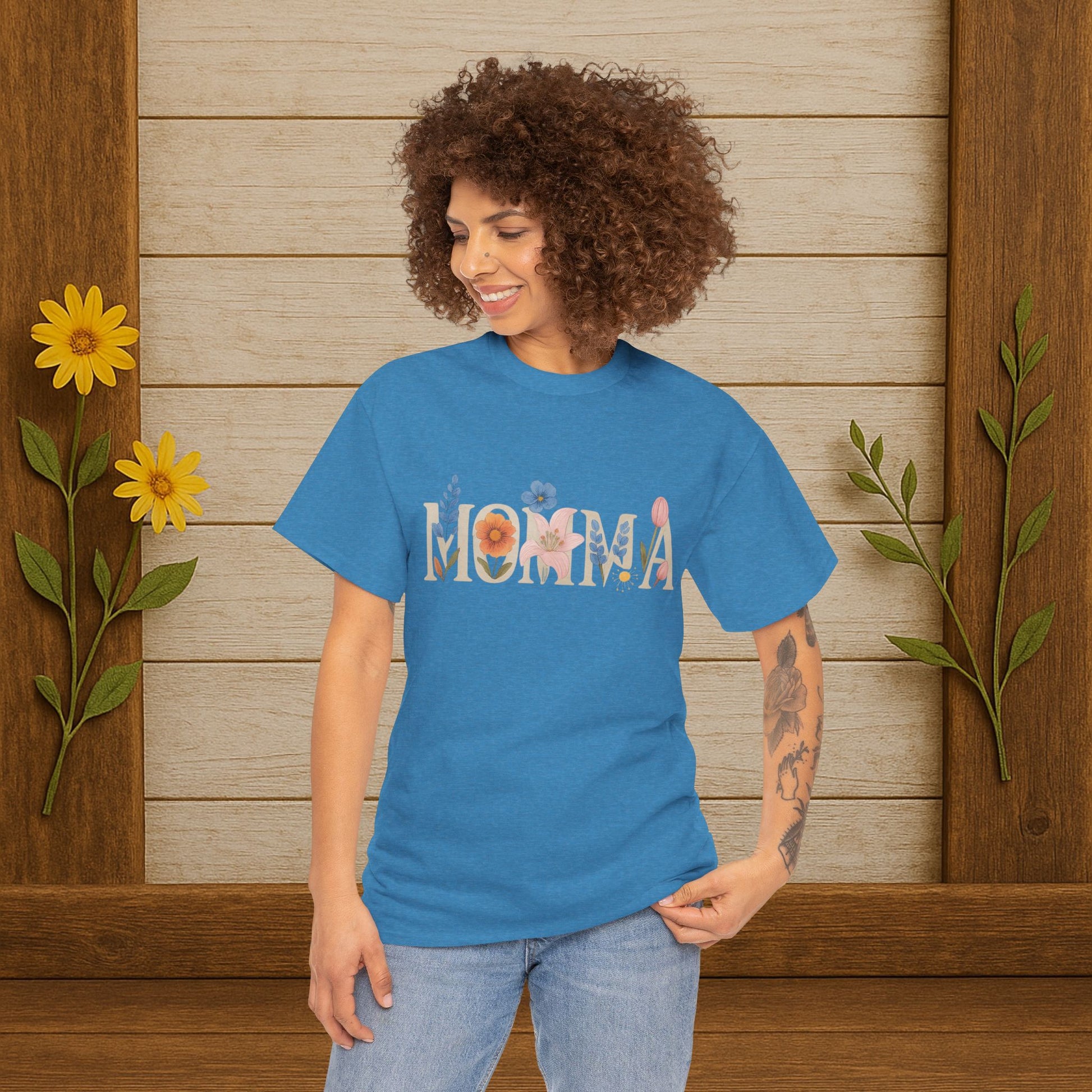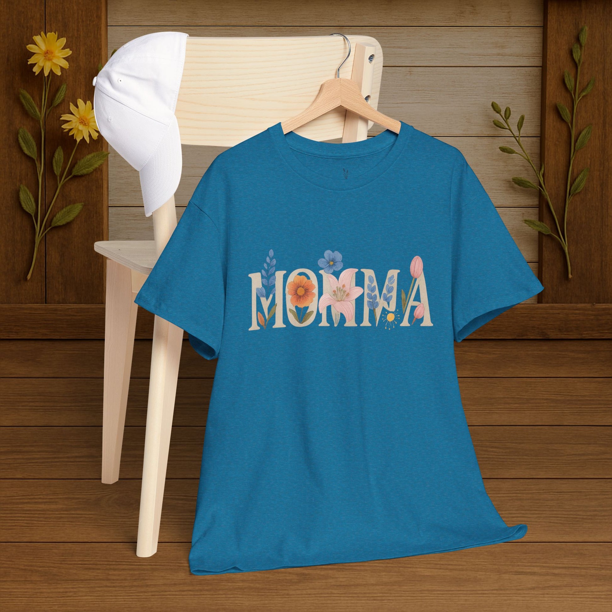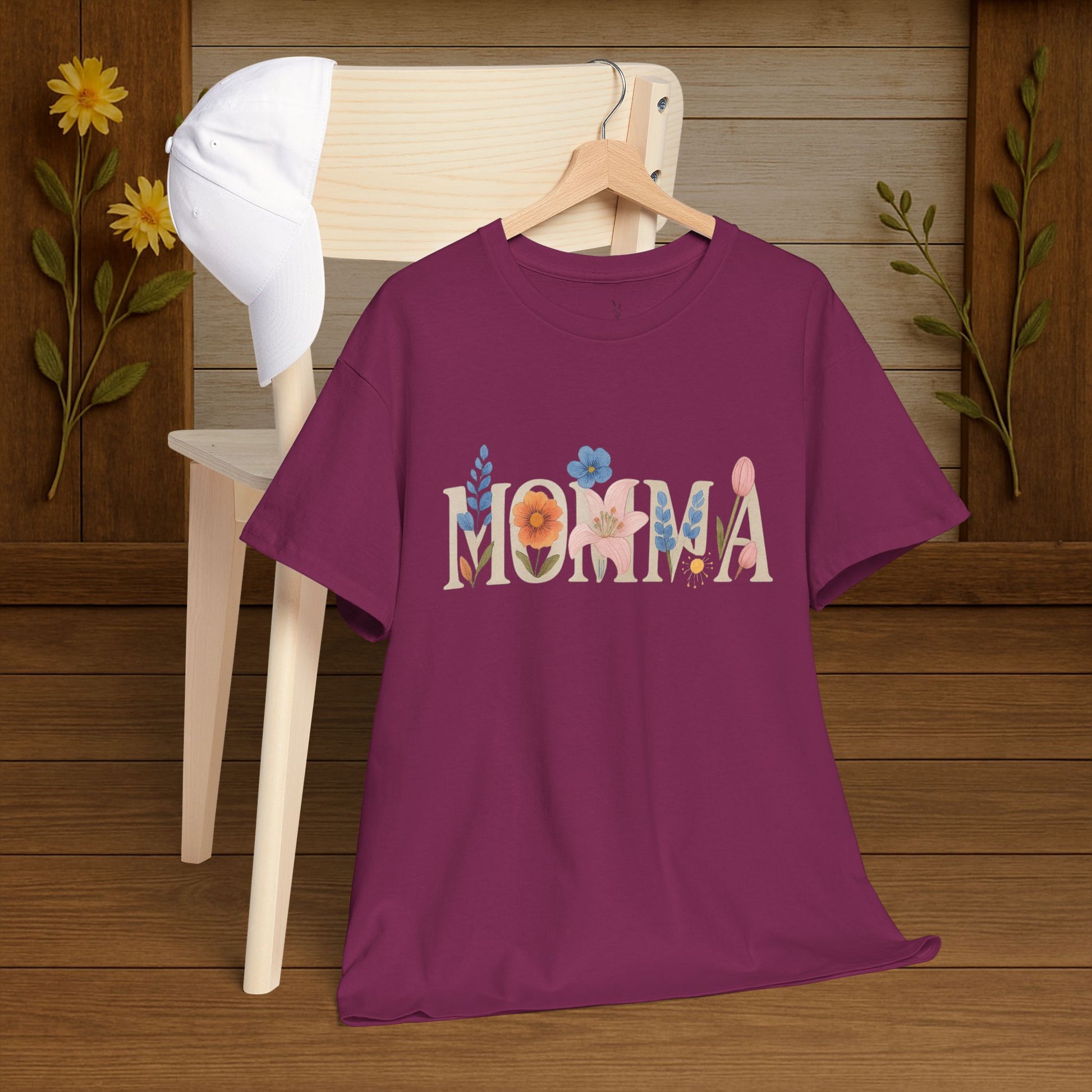 The Momma T-Shirt from PrairieSpirits Designers Collection exudes a nostalgic and comforting vibe, perfect for moms and mother figures. This tee can be worn on Mother's Day, birthdays, or any day to show appreciation and love. It is a unisex heavy cotton tee suitable for adults.