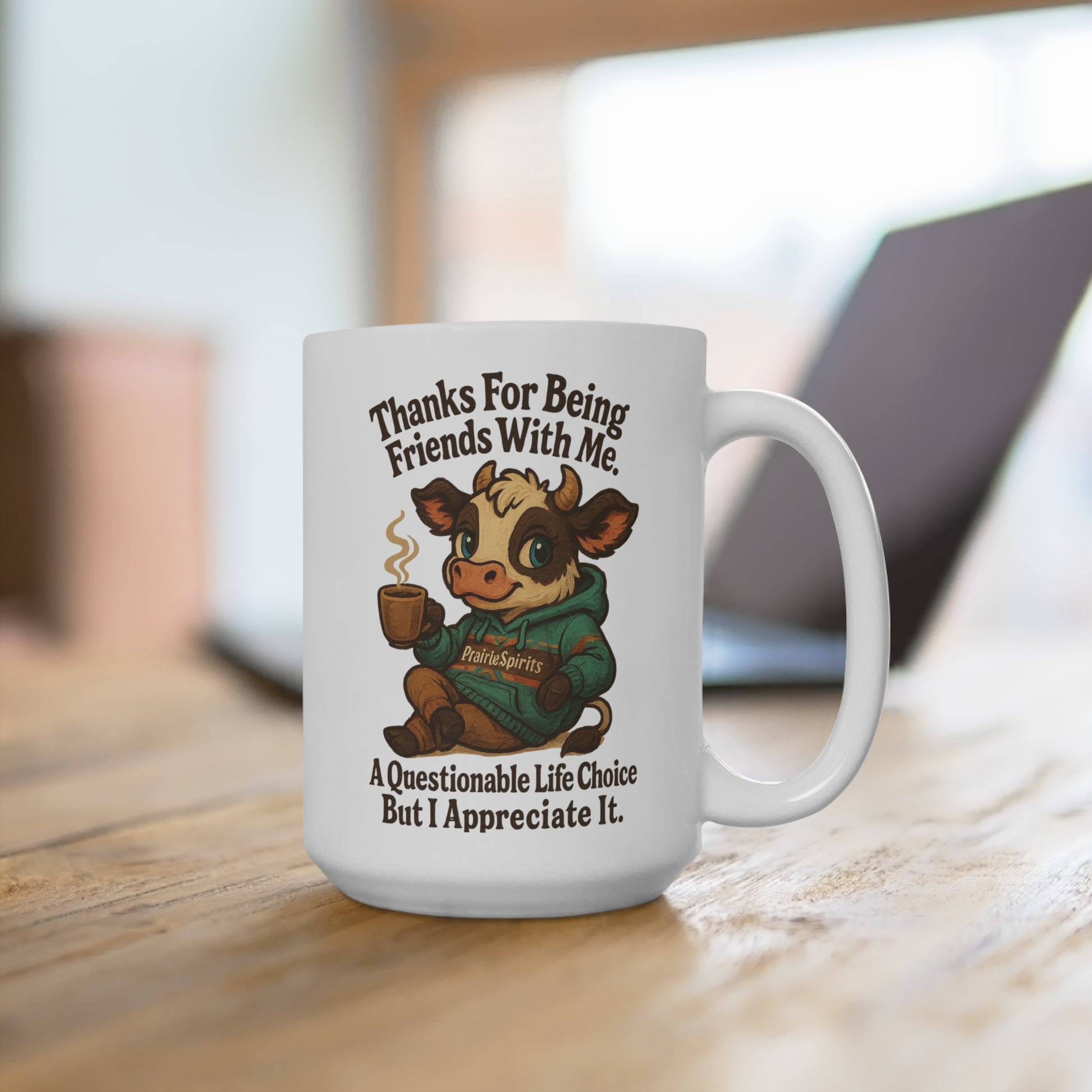 The MiniMoo Cup is a stylish and practical addition to your morning routine. With its PrairieSpirits Designers Collection, this 15oz ceramic mug exudes a calming and serene vibe, perfect for sipping your favorite hot beverage. Ideal for coffee or tea lovers looking to add a touch of artistry to their daily ritual.