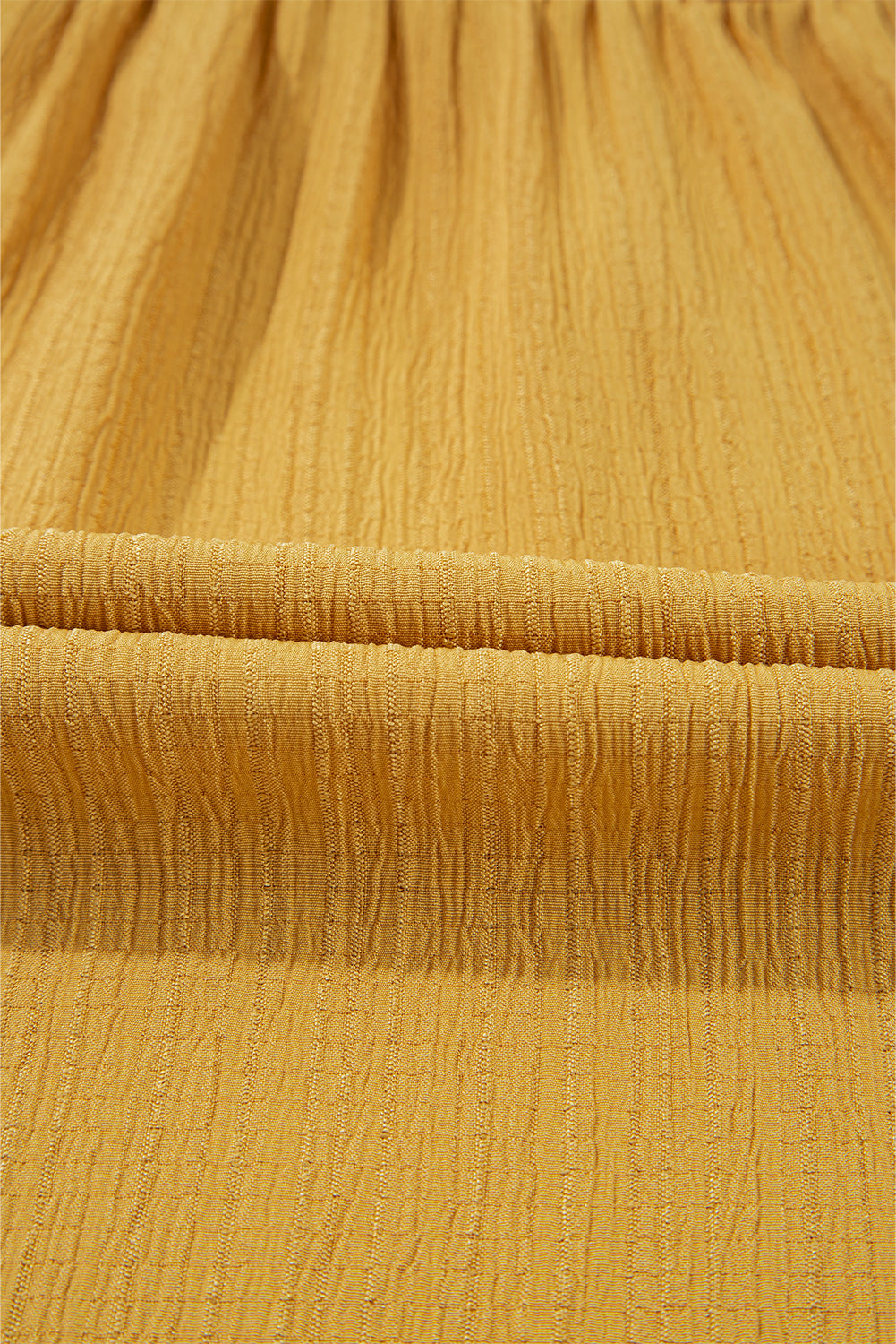 Mustard Geometric Short Puff Sleeve Frill Neck Blouse