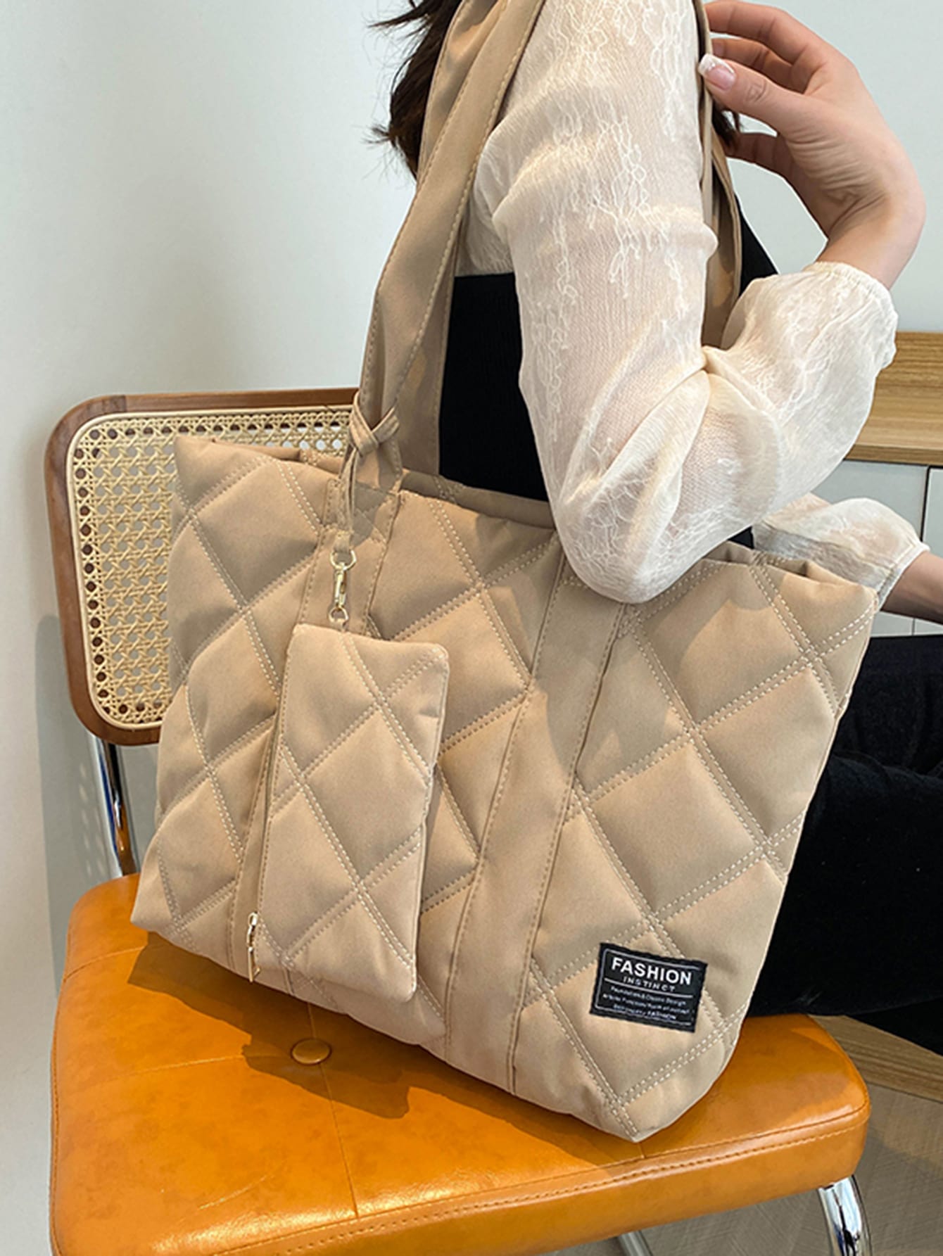 Quilted Patch Detail Shoulder Tote Bag With Purse