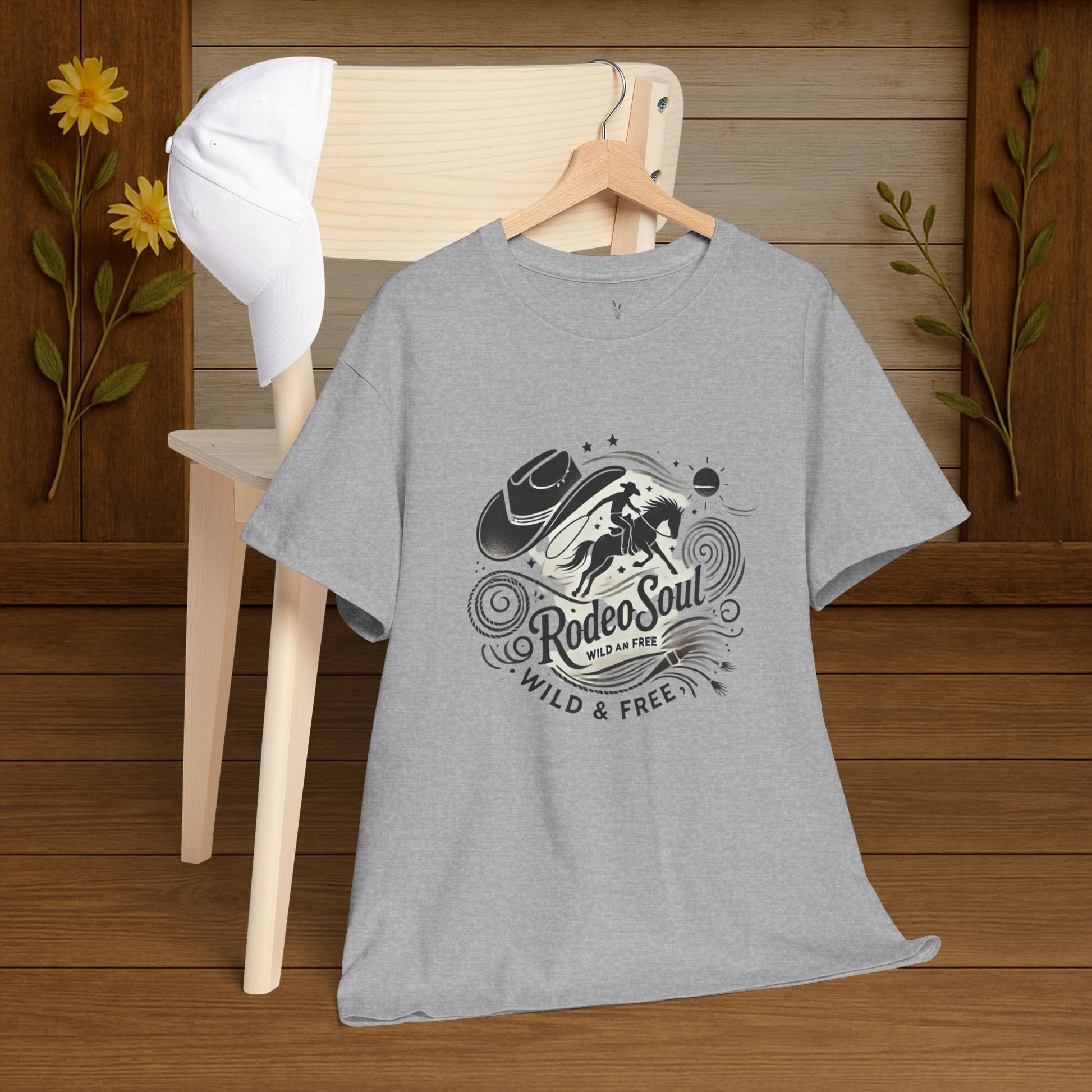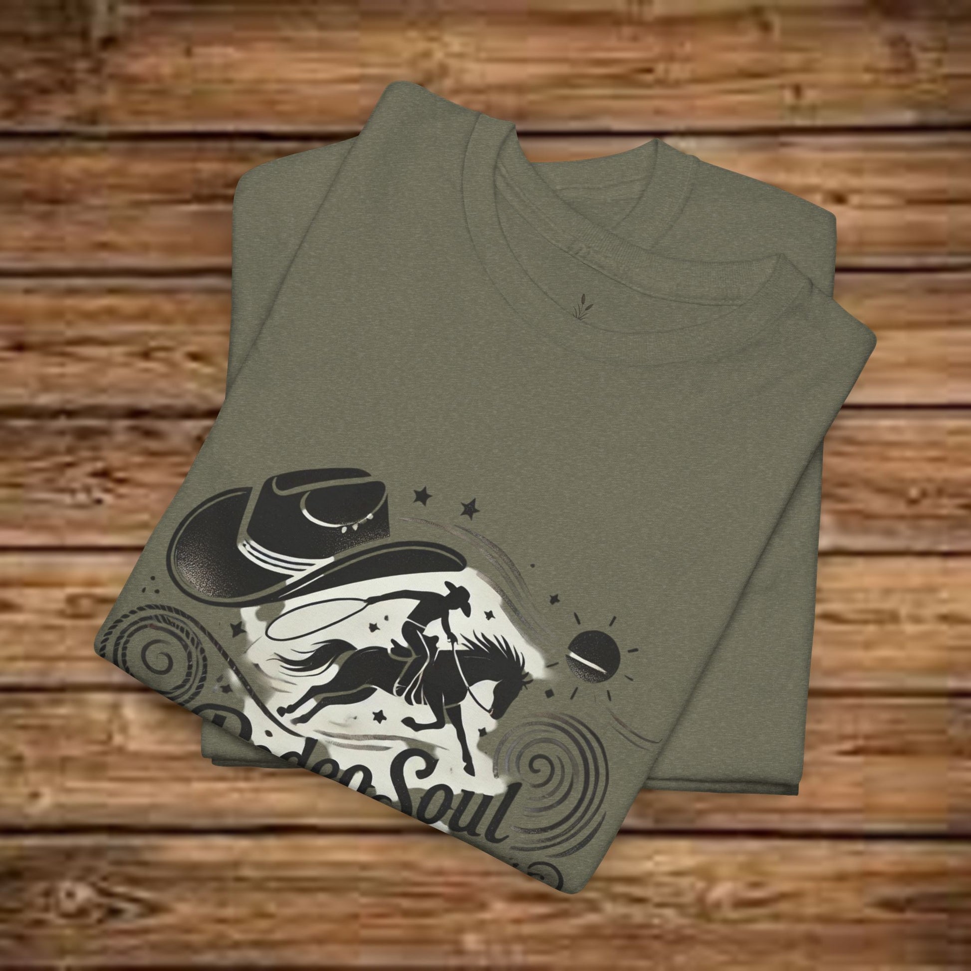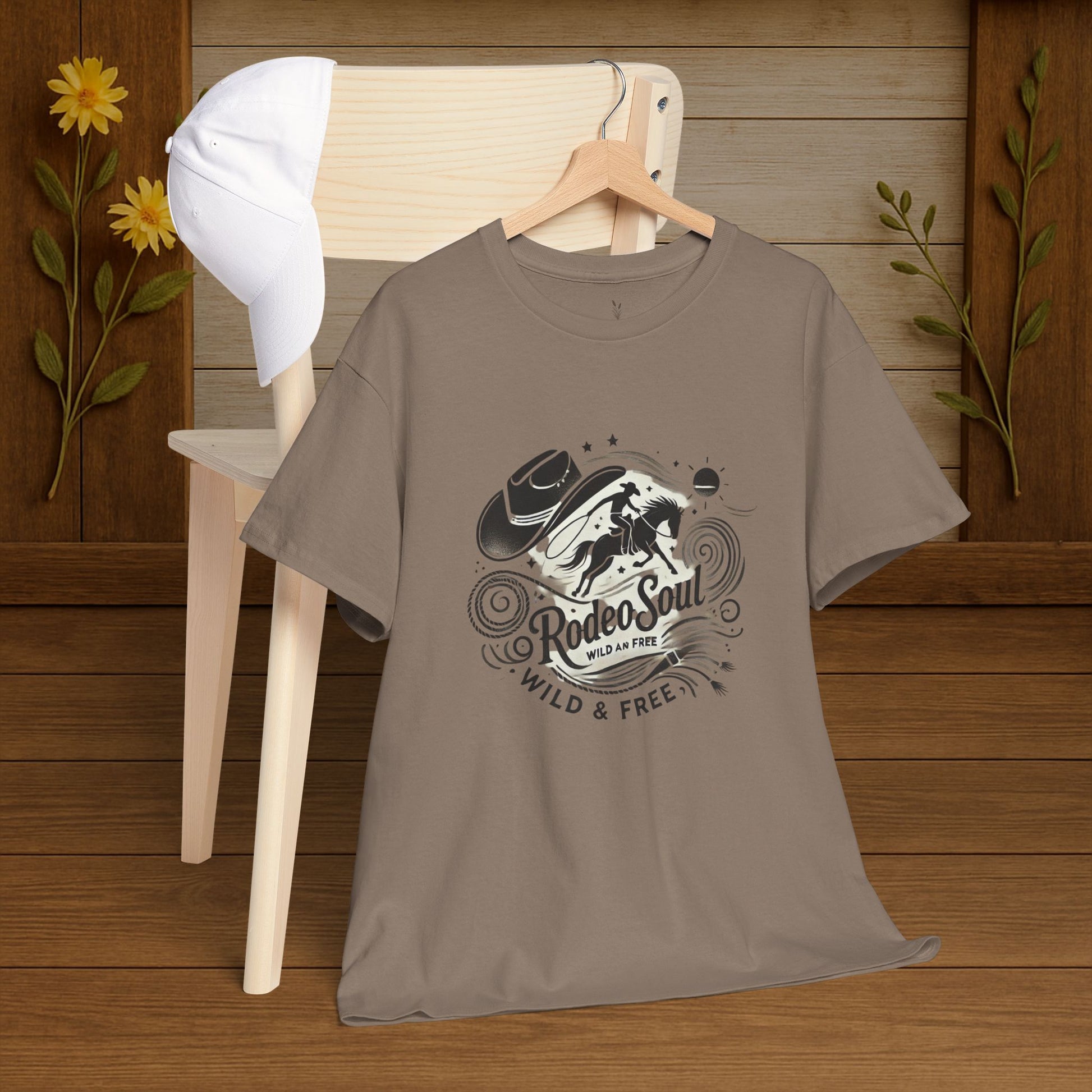 Embrace the free-spirited vibes with this Rodeo Soul Tee from the PrairieSpirits Designers Collection. Perfect for adults looking for a comfortable and stylish tee for year-round wear. The versatile design can be worn casually or dressed up for semi-formal occasions, offering a timeless look.