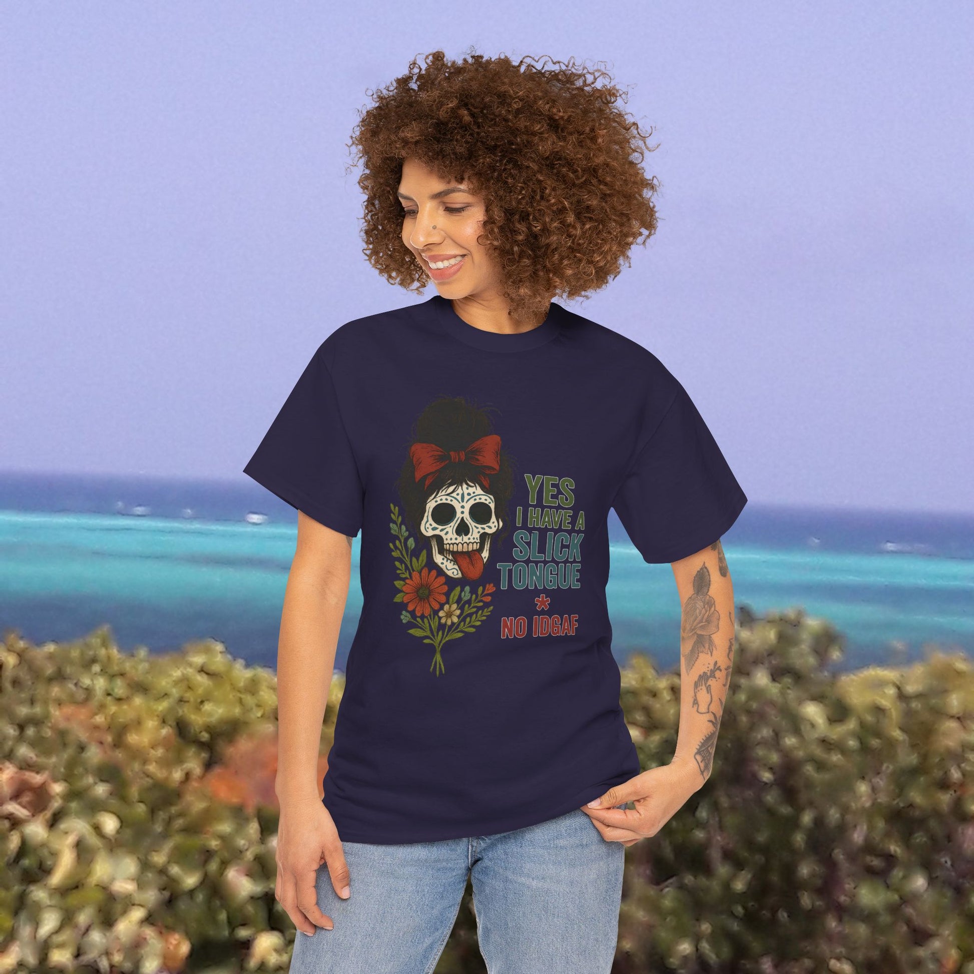 Slick Tongue design from PrairieSpirits Designers Collection on a classic fit unisex heavy cotton tee. Perfect for those who appreciate unique and artistic designs, this shirt is ideal for casual and semi-formal occasions. The comfy fabric and tear-away label offer a scratch-free experience. Suitable for adults.