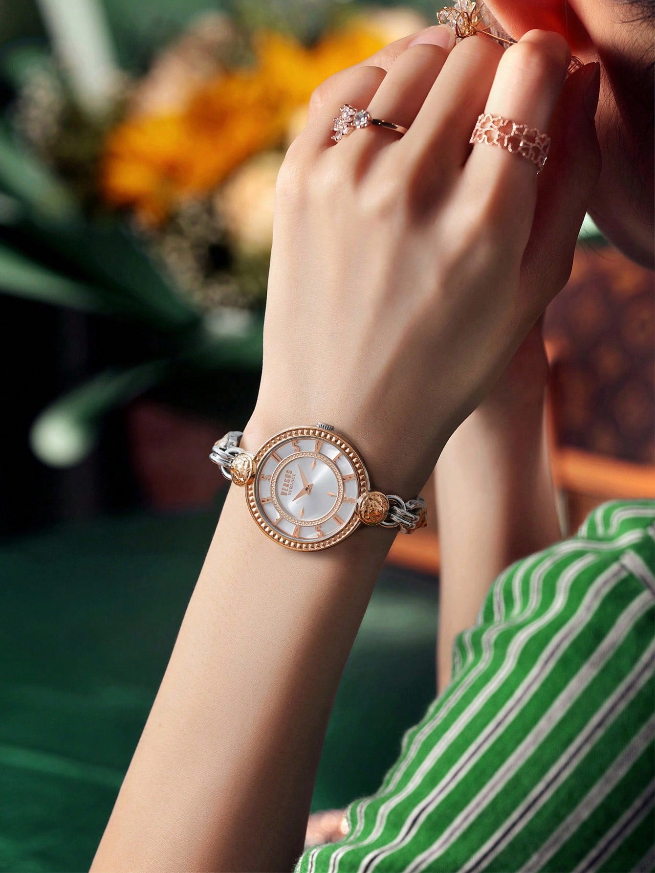 Versace Les Docks Luxury Quartz Watch For Female,Sliver-Tone Steel Bracelet Watch For Women With 36mm Two Tone Case Analogue Wrist Watch,VSPLL0319