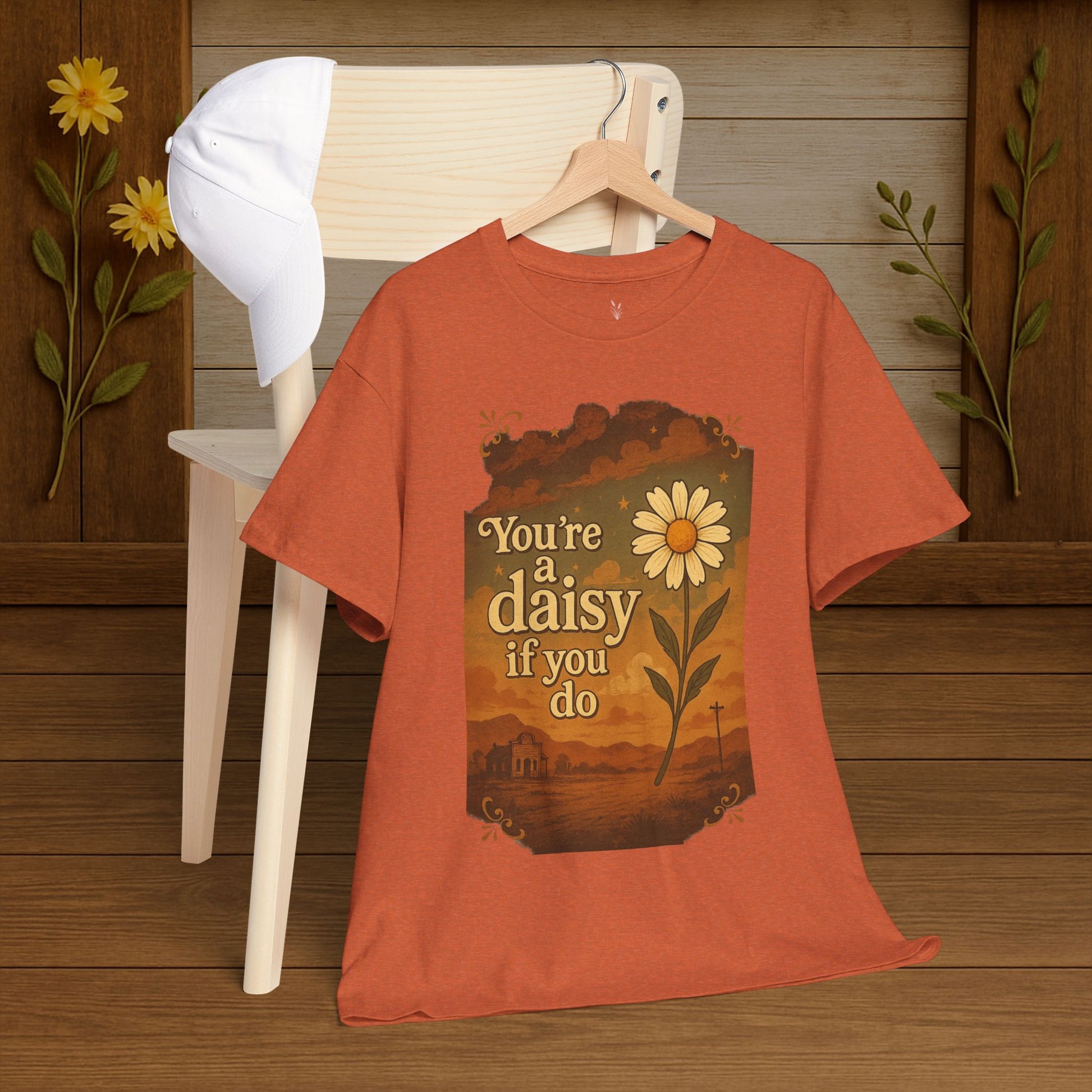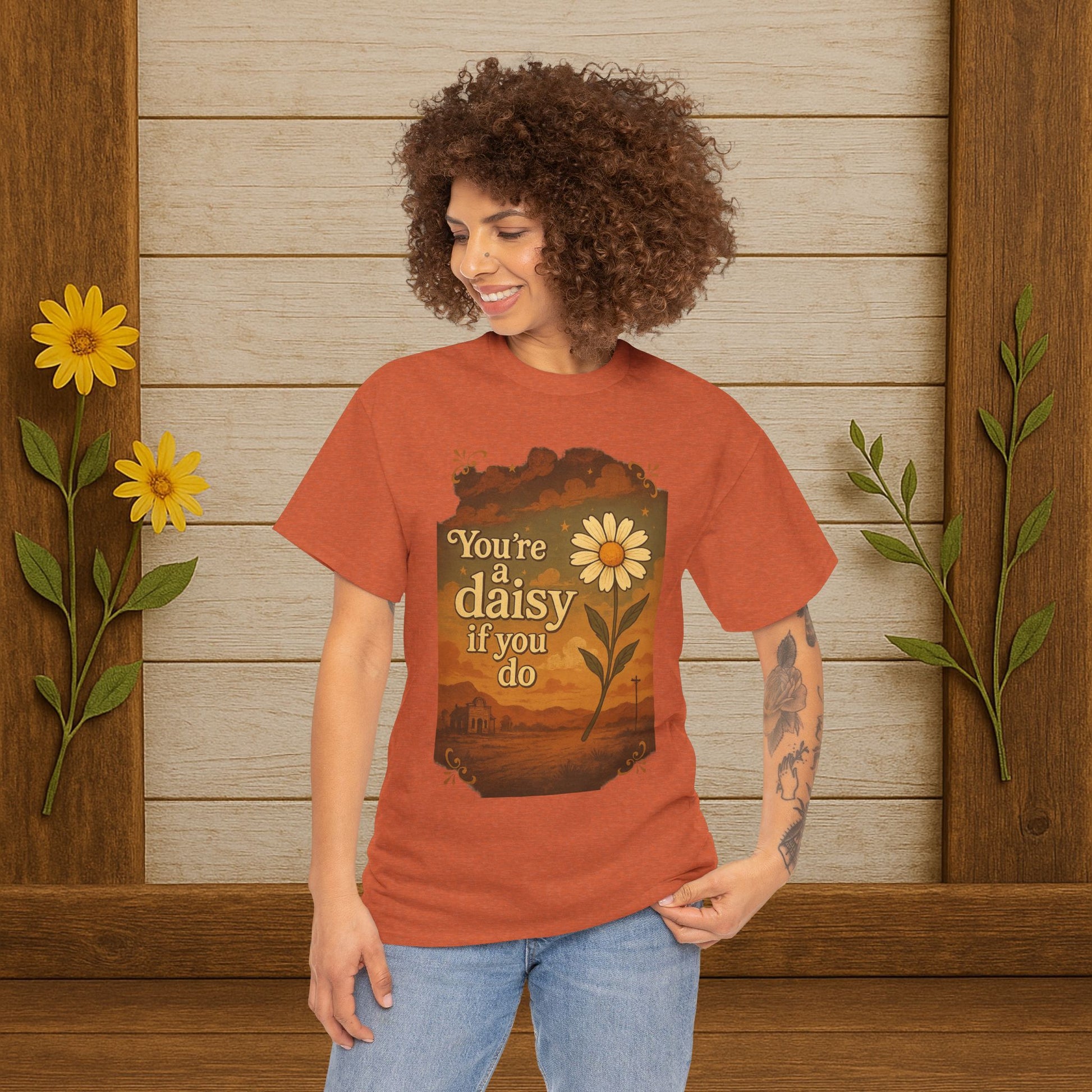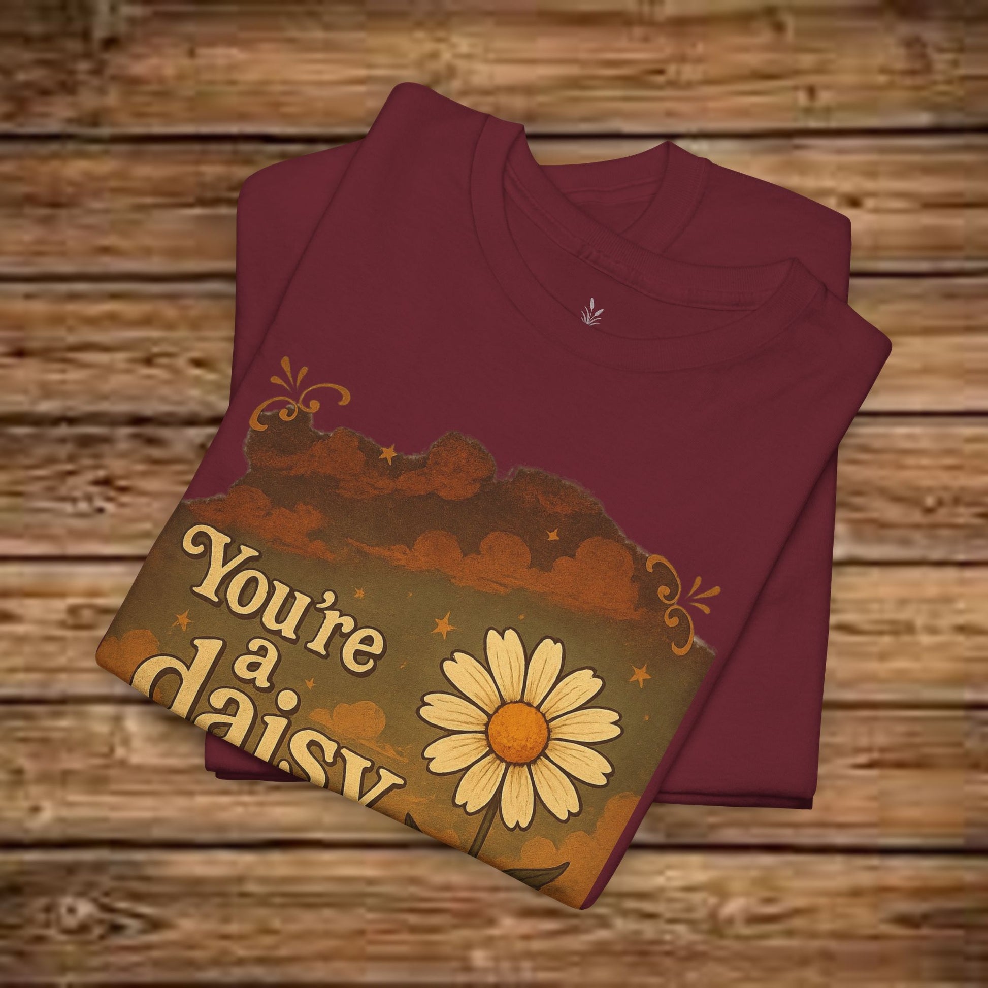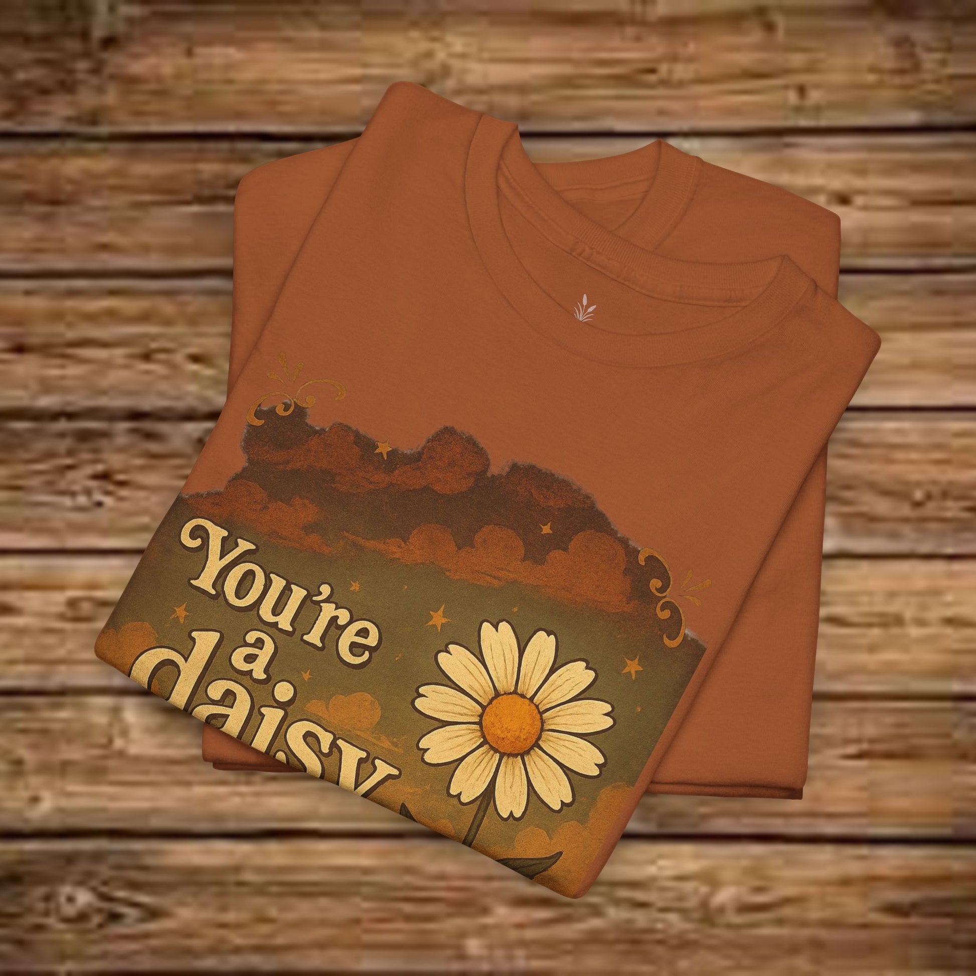 Vintage and stylish, the You're a Daisy Unisex Tee from PrairieSpirits Designers Collection exudes a retro vibe perfect for casual outings or laid-back gatherings. This tee is relevant for vintage enthusiasts and fans of unique designs. Ideal for vintage-themed parties, casual Fridays, and everyday wear.